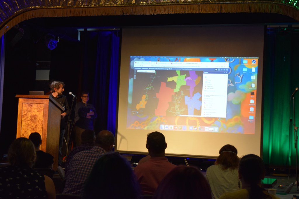 Speakers at the forum discussed a wide range of topics, from the personal story of Elizabeth Quirk and her work with the FRTA free fare program, to a deep dive into the operations of micro-transit organizations offering rides in very rural areas. The Pioneer Valley Planning Commission presented the early version of an innovative new mapping tool (commissioned by the Food Bank and the WMTAN and funded by grants from T4MA and Feeding America) that provides a birds–eye view of where public transportation is available in the region and its proximity to grocery stores, places of employment, higher education, and medical care. The tool is helpful for advocates who study transportation issues and can be used by anyone relying on local public transportation to plan their trips.